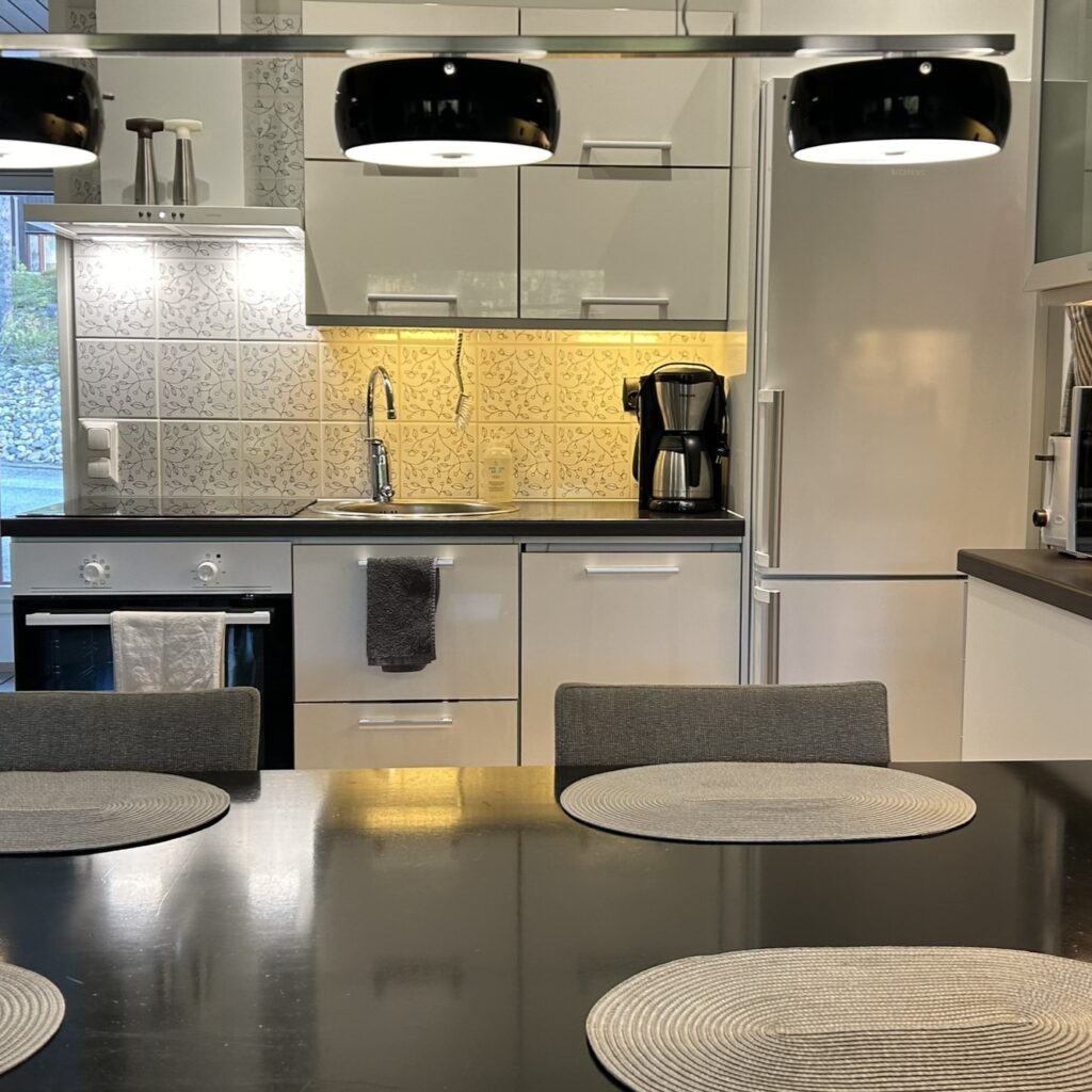 Varustelu on kohdallaan Vuokatti Basecampissa. Keittiöstä löytyy induktioliesi ja kaikki muu tarvittava kokkaamiseen. Lähin kauppa löytyy kivenheiton päästä. Jos ruoanlaitto ei houkuta, kävelymatkan päässä on useita ravintoloita.